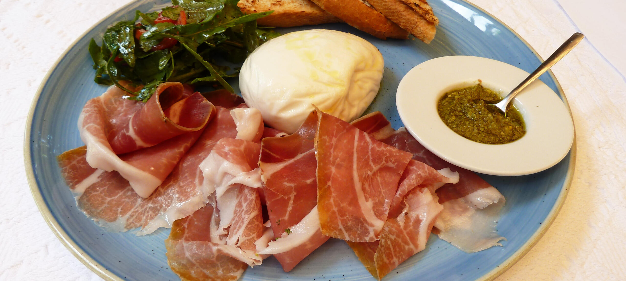 TANJIR SIREVA (150g)TANJIR PRŠUTE (100g)SIR U MASLINOVOM ULJU SA ZAČINSKIM BILJEM (100g)GRILOVANE TIKVICE (250g)BURATA (480g)